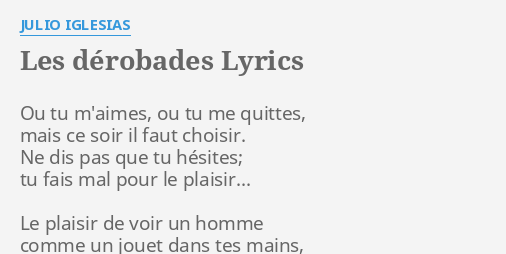 Les Derobades Lyrics By Julio Iglesias Ou Tu M Aimes Ou