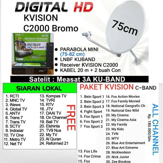 Jual Paket parabola mini K-vision Bromo c2000 tanpa dish, bisa menggunakan dish/antena bekas Online Januari 2021 | Blibli